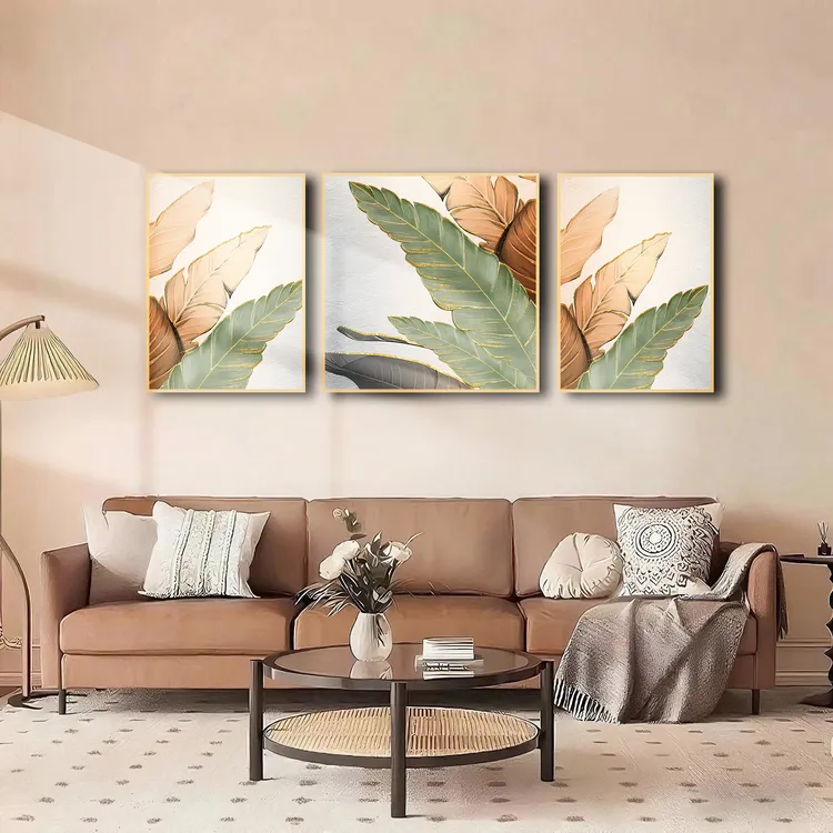 【黎总】金叶子 手工油画客厅装饰画三联油画法式沙发背景墙挂画